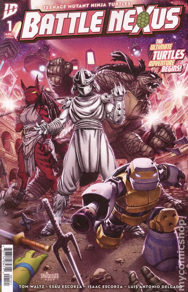 (W) Tom Waltz (A) Escorza Brothers (CA) Mateus Santolouco The raddest TMNT event of the decade kicks off here! When one of the Turtles closest allies is taken hostage by a mysterious adversary, the brothers are drawn into a new dimension of adventure in the Battle Nexus. This blistering five-part weekly series finds the Ninja Turtles fighting for their lives in a martial arts challenge unlike anything theyve faced, with four deadly champions selected from across 40 years of TMNT media to destroy the Ninja Turtles! EVERY Ninja Turtle. For the first time, IDWs Heroes in a Half-Shell meet allies from other fan-favorite TMNT universes as they fight for their lives and discover the unbelievable secrets of Battle Nexus! 32 pages, full color, not rated. Cover price $4.99.