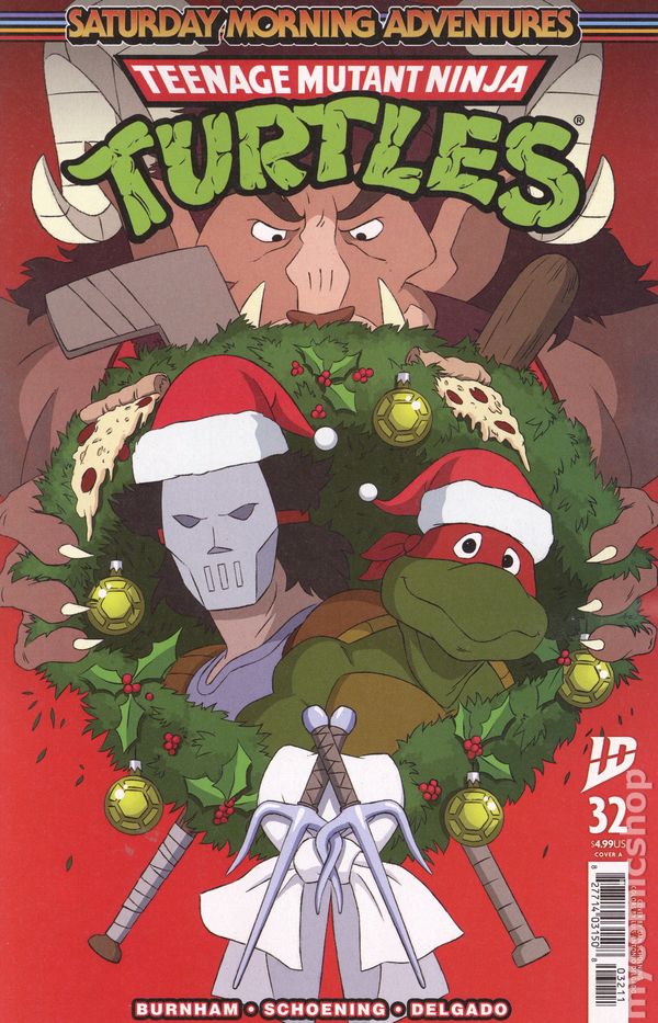 (W) Erik Burnham (A) Dan Schoening (CA) Dan Schoening It’s time for some holiday high jinks! Raphael and Casey Jones are doing some holiday shopping when a goat mutant who really wishes he was the Krampus decides to bring in some yuletide chaos! Will stopping this particular lawbreaker restore Casey’s holiday spirit? There’s only one way to find out—grab some cookies and milk (not the ones for Santa) and settle in for TMNT: Saturday Morning Adventures! 32 pages, full color, not rated. Cover price $4.99.