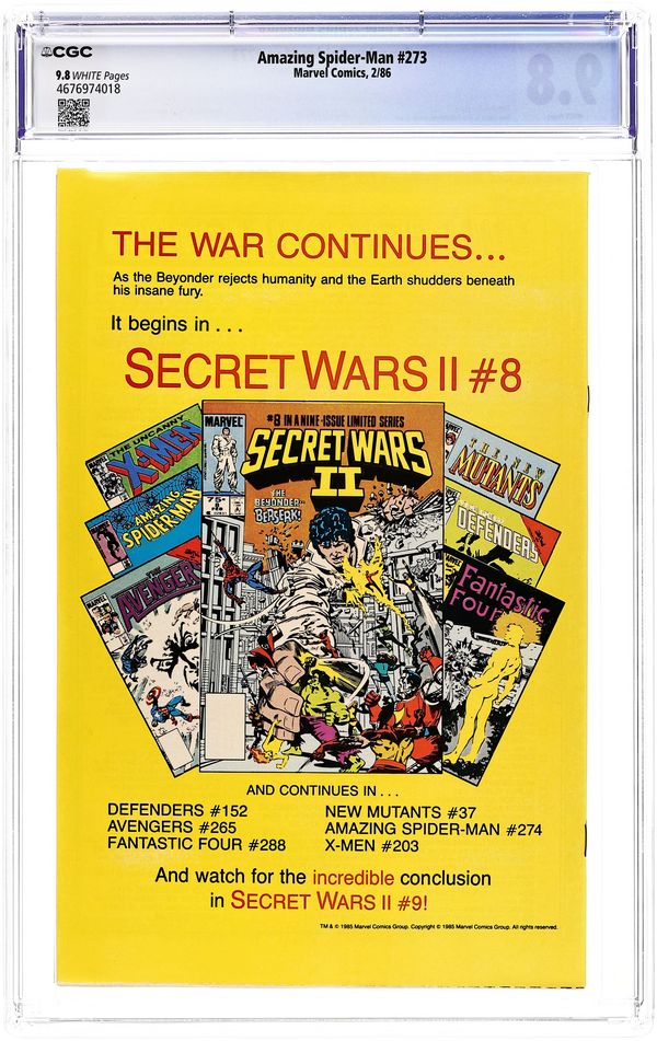 Tags: Marvel Legacy Numbering: Amazing Spider-Man (part 268), Secret Wars II (part 2.2)Amazing Spider-Man (1963 1st Series) 268 CGC 9.8