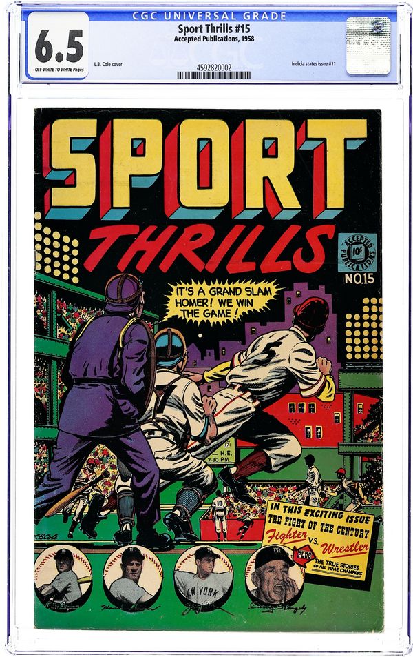 Cover by L. B. Cole. Numbering continues from Dick Cole (1949 Curtis/Star) #10. True-life tales of sporting greats, reprinted from Star Publications. Legendary ball player Ted Williams established records that remain today, and is regarded as one of the greatest hitters in baseball history. Early player Ty Cobb's combined total of 4,065 home runs is also a record that lasts for decades. Ted Williams; Ty Cobb. 32 pages, Full Color. Cover price $0.10.