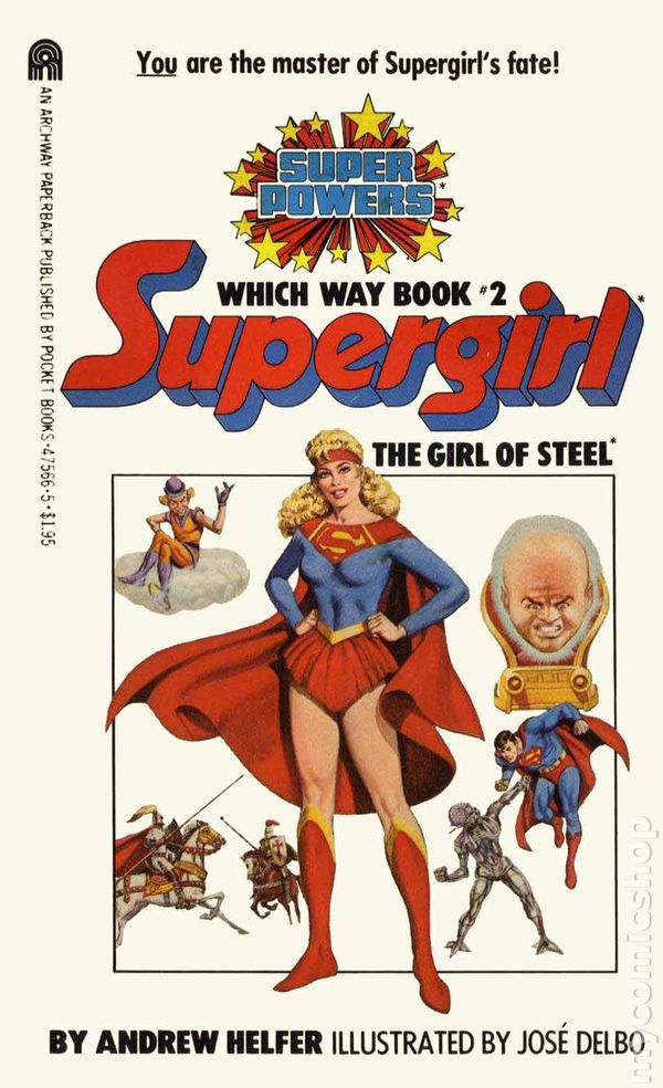 1st printing. Written by Andrew Helfer. Art by Jose Delbo. YOU are the master of Supergirl's fate. With each turn of the page...each decision you make will determine the outcome of the Girl of Steel's latest adventure. You can read this gem over and over and have a dozen different outcomes. Softcover, 4-in. x 7-in., 120 pages, B&W. All Ages Cover price $1.95.
