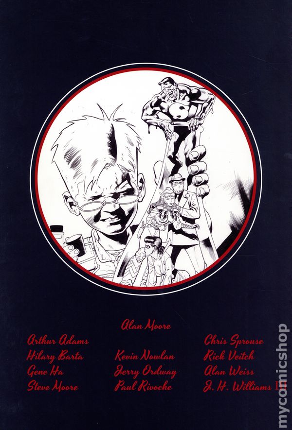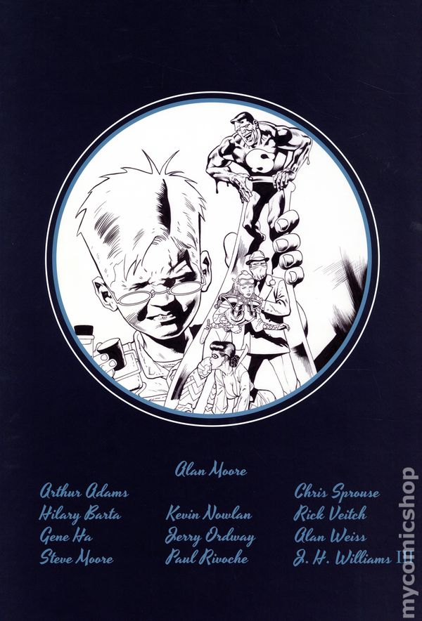 J. H. Williams Cover - 1st printing. Alan Moore was the braintrust behind America's Best Comics, one of the most acclaimed imprints in the history of comics. Comprised of four main titles: Tom Strong, Top 10, Promethea, and the anthology Tomorrow Stories, the ABC line paired Moore with the finest artists in comics. This volume will present a beautiful overview of the ABC line, including complete stories from Promethea #10 (Eisner Award-winner for best issue of the year) and Top 10 #7. Additionally, a fine selection of shorter stories featuring Tom Strong, Jack B. Quick, Splash Brannigan, and Greyshirt will be included. Plus a stunning gallery section. The best stories by the best artists in the best format! Hardcover, 12-in. x 17-in., 216 pages, B&W.