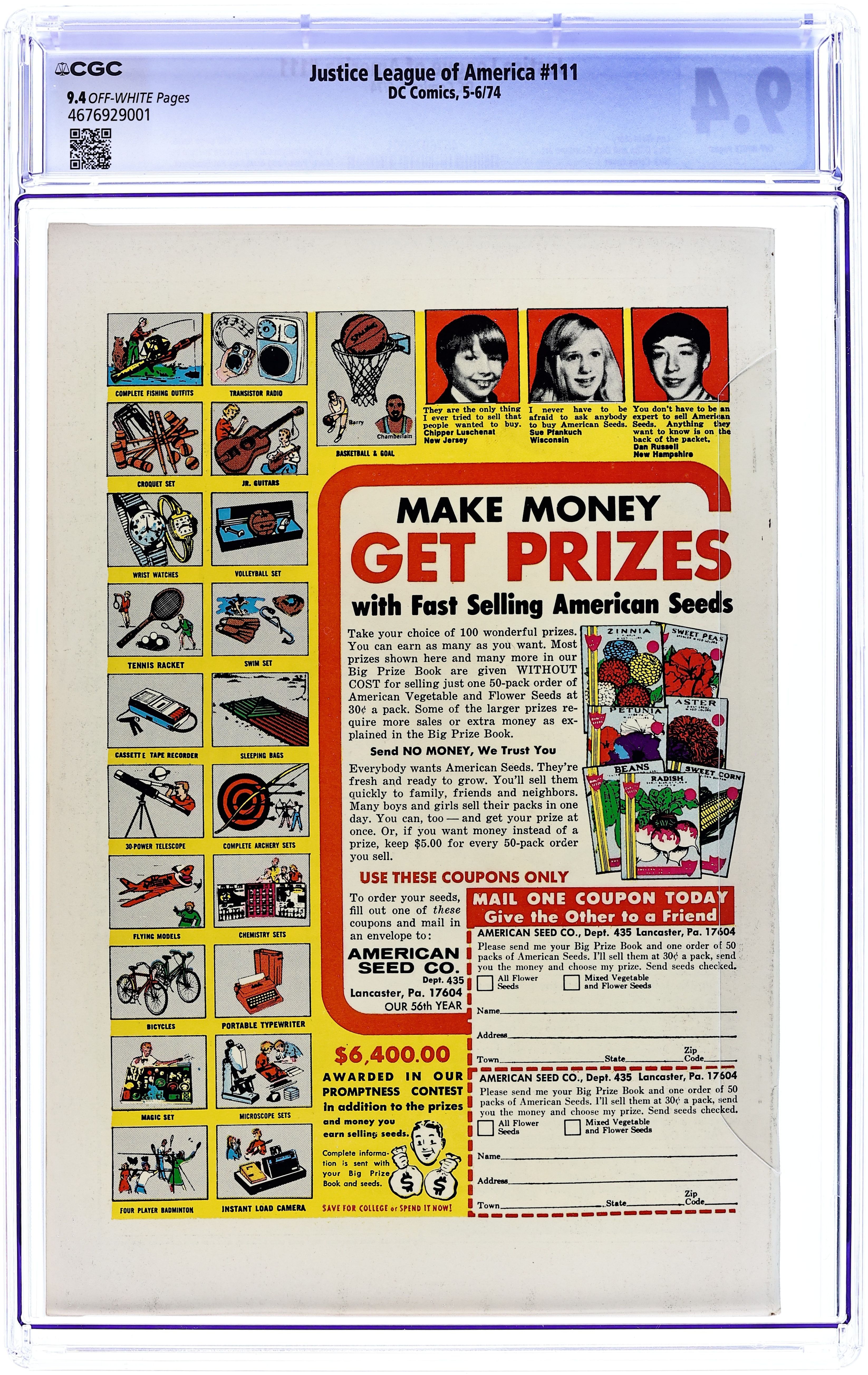 100-page giant issue. Cover art by Nick Cardy. War with the One-Man Justice League!, script by Len Wein, pencils by Dick Dillin, inks by Dick Giordano; The Justice League has lost some of their powers and frees Amazo to gather the powers unto himself, and thereafter transfer their powers back to the JLA members using a machine. Amazo and His Creator, script by Martin Pasko, pencils by Mike Sekowsky and Carmine Infantino, inks by Bernard Sachs, Joe Giella, and Sid Greene. Beware! The Black Star Shines! starring the Seven Soldiers of Victory, art by Jon Smalle. The Case of the Twisted Twins! starring the Crimson Avenger, art by Jack Lehti. The Sixty Kiddie Club! starring Vigilante, script by Bill Finger, art by Mort Meskin. The Origin of Starman article by Julius Schwartz. Starman's Lucky Star!, script by Gardner Fox, pencils by Mort Meskin, inks by George Roussos. The Super-Exiles of Earth! starring the Justice League of America, script by Gardner Fox, pencils by Mike Sekowsky, inks by Bernard Sachs. 100 pgs. $0.60. Cover price $0.60.