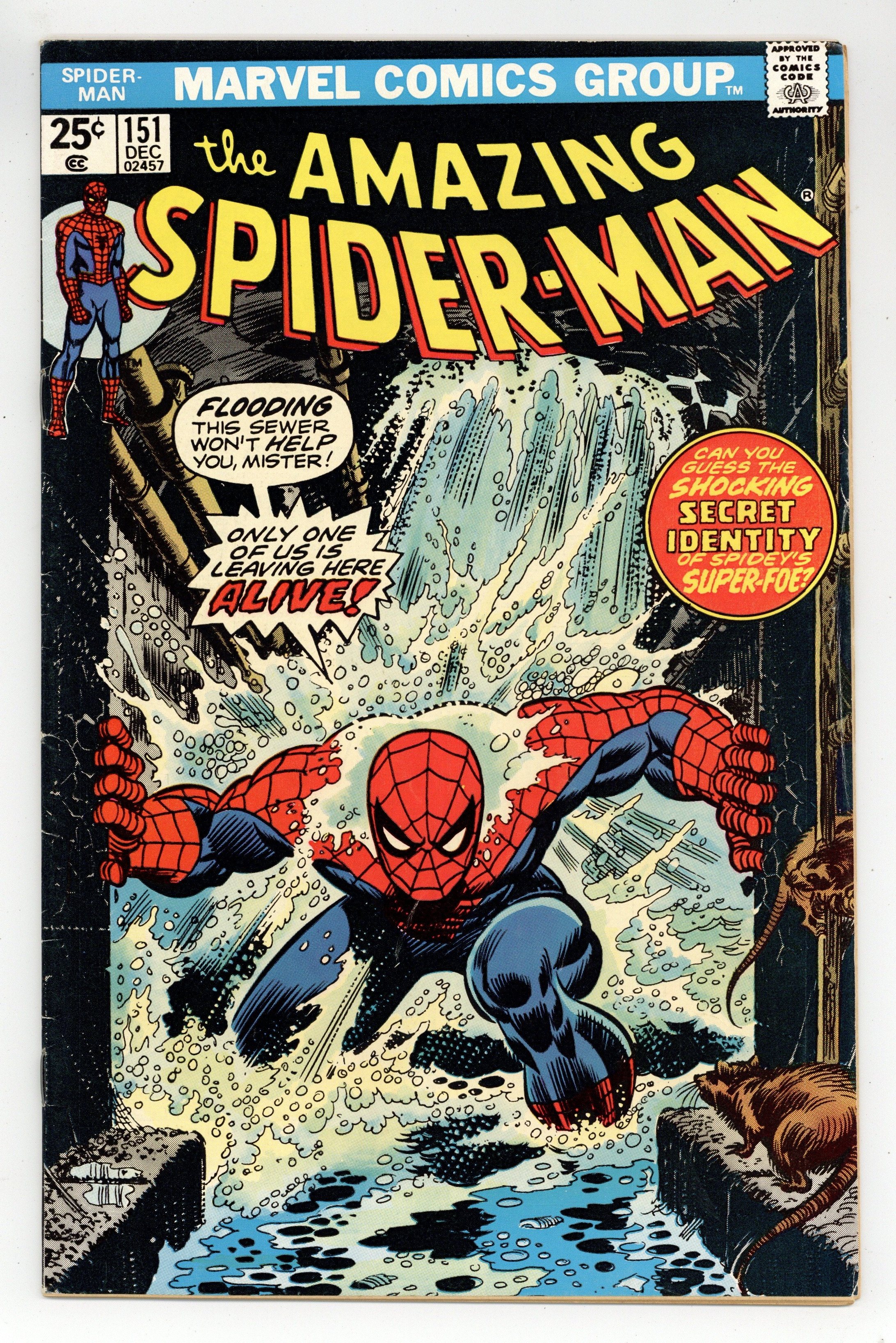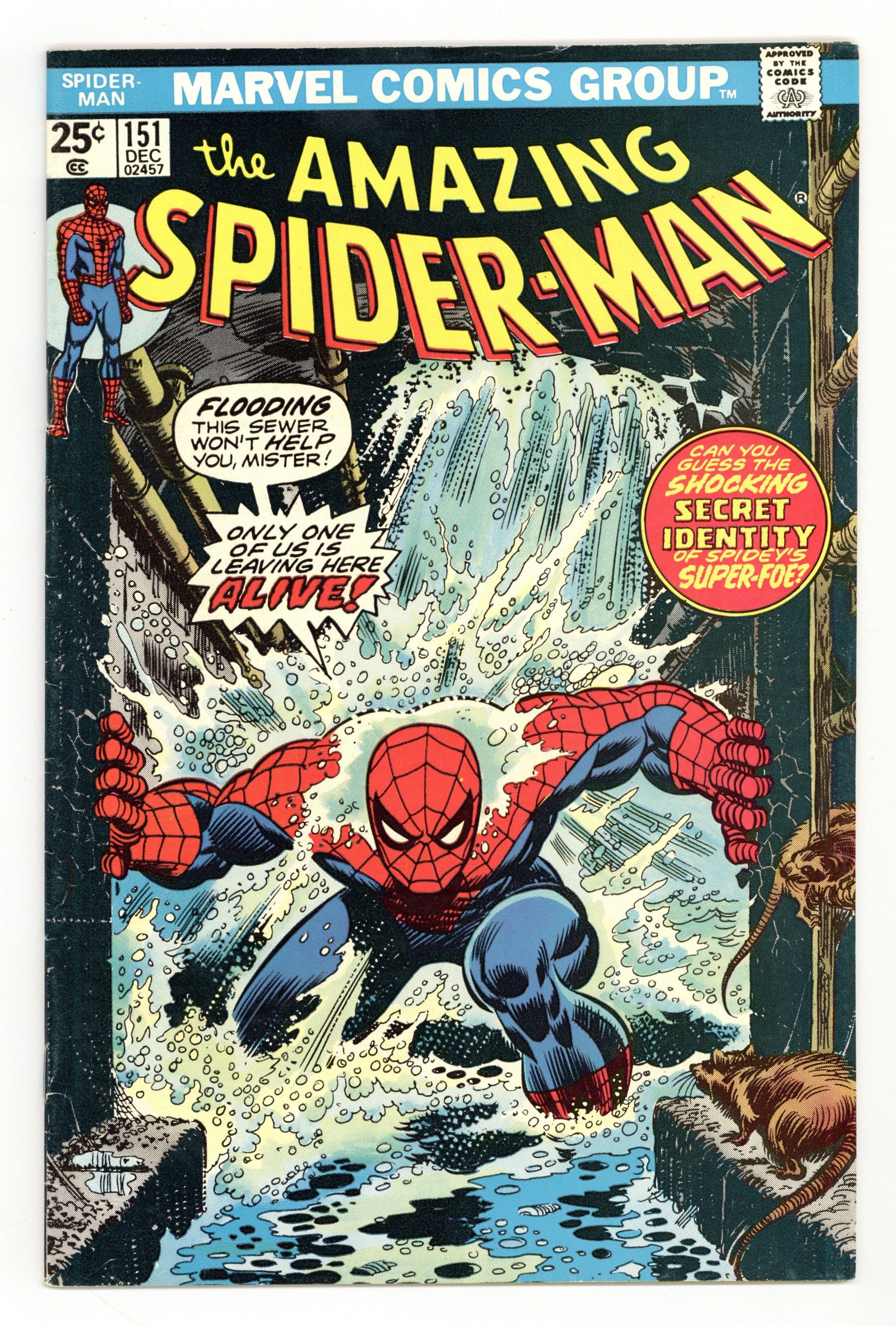 Starts Dec 8 First appearance of the Spider-Man Clone in "Even If I Live, I Die!" Script by Gerry Conway. Pencils by Ross Andru. Inks by Mike Esposito and Dave Hunt (backgrounds). Cover by Gil Kane and Frank Giacoia. One of the classic web-slinger issues of the bronze age! At Shea Stadium in Queens, the master plan of the Jackal finally comes together! On the infield grass, the Amazing Spider-Man fights to the finish against a carbon copy of himself - the Spider-Clone! With Ned Leeds in mortal danger, can the wondrous wall-crawler triumph over his clone and the Jackal too? But even if he wins, your friendly neighborhood Spider-Man may still lose Gwen once again. An emotional ending for all. Origins of the Jackal and the Gwen Stacy clone. Apparent deaths of the Jackal and the Spider-Clone. Cameo appearances by Joe Robertson, J. Jonah Jameson, Betty Brant, Mary Jane Watson, and the Tarantula. Flashback cameos by Anthony Serba and Gwen Stacy. (Note: The Gwen Stacy clone returns many years later in Spectacular Spider-Man Annual 8. The next story arc relating to the clone saga takes place in Spectacular Spider-Man (1st series) 25-31 - the introduction of Carrion, the clone of Professor Miles Warren. This issue completes Gerry Conway's unforgettable 3-year run as the writer of the Amazing Spider-Man title - highlighted by the death of Gwen Stacy; the creation of the Punisher; and the Spider-Clone saga. Many future stories proceeded from Gerry Conway's bronze age scripts. The full clone saga was reprinted in 2011 in the trade paperback: The Amazing Spider-Man - The Original Clone Saga. This story was reprinted in Marvel Tales 126.) 36 pages. 25c cover price. Cover price $0.25.