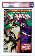 Direct Edition. Days of Future Past: Part 2 of 2. "Mind Out of Time!" Story by Chris Claremont and John Byrne. Art by John Byrne and Terry Austin. Cover by Terry Austin. In order to prevent a dystopian future where all mutants and super-heroes are hunted and killed by the robotic Sentinels, the X-Men must prevent the new Brotherhood of Evil Mutants from assassinating Senator Kelly. Featuring one of the most shocking death scenes in the comic book history. NOTE: Uncanny X-Men #123 and #142 are rare commodities in the realm of comics as they are two of the very few covers where inker extraordinaire Terry Austin actually does the pencils as well. - Odinson Lone Star Comics Archivist. 36 pgs. Cover price $0.50.