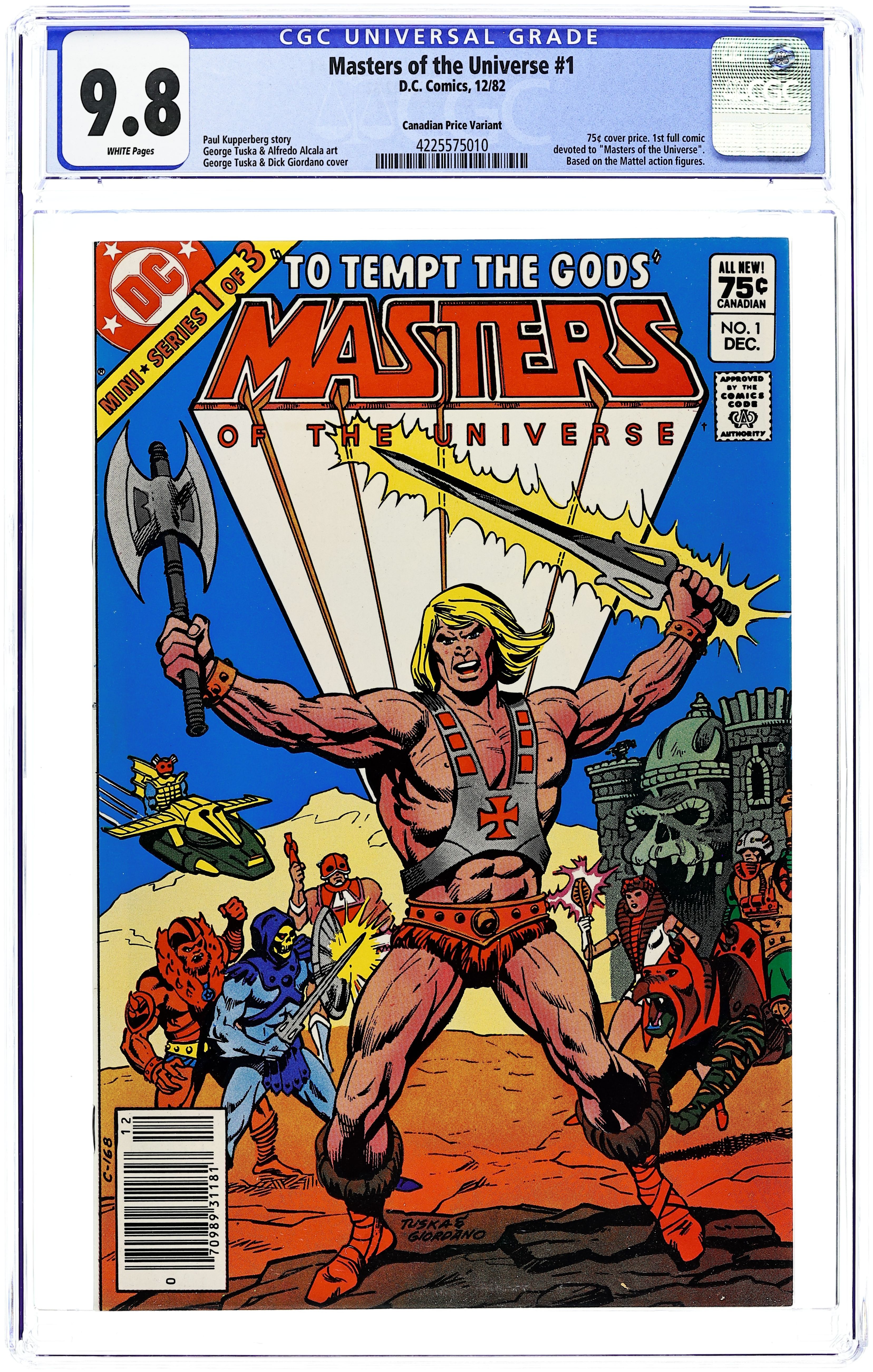 Canadian edition with .75 cents cover price. Written by Roy Thomas. Art by Adrian Gonzales and Alfredo Alcala. Cover by Alfredo Alcala. Something is stalking the streets of Thessalonika, killing anyone caught outside at night. In this panicky environment, someone as different as Arak is bound to attract unwanted attention. During a brawl with Byzantine soldiers, Arak is rendered unconscious and left outside for the invisible Stalker. Written by Roy Thomas and Danette Thomas. Art by Trevor von Eeden and Alfredo Alcala. During the war campaign against the Avars, Valda is captured and held prisoner by the Avars' head magician, Chelchak. 16-page preview of Masters of the Universe, written by Paul Kupperberg, art by Curt Swan and Dave Hunt. Cover price $0.75.