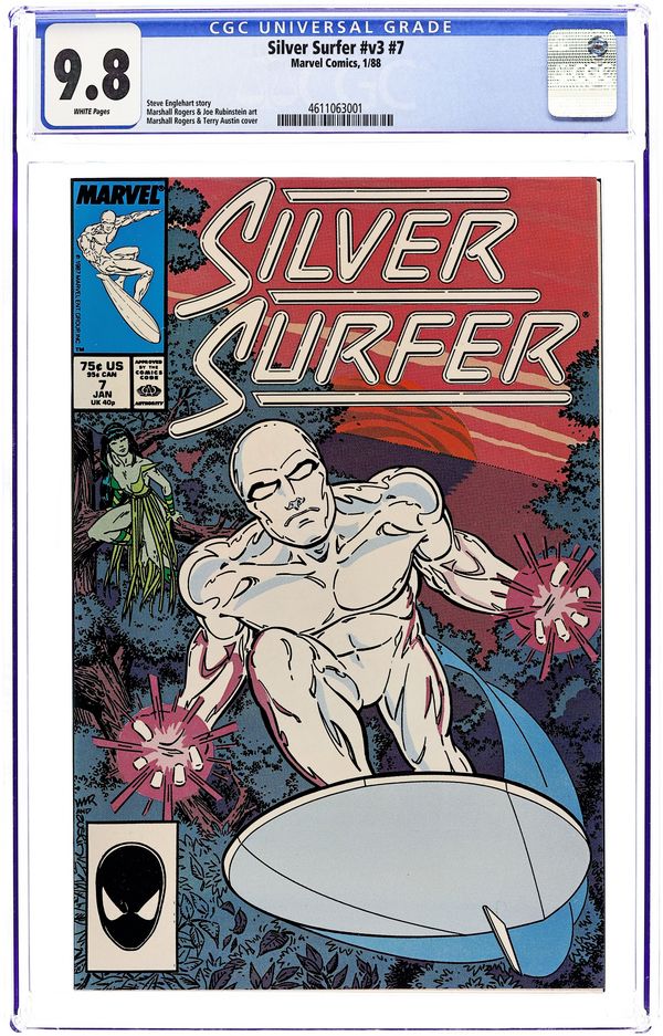 Direct Edition. "Heaven!" Firebird cameo. Story by Steve Englehart. Art by Marshall Rogers and Joe Rubinstein. Story picks up after West Coast Avengers Annual #2 and Avengers Annual #16. Empowered with the Power Cosmic the Silver Surfer is one of the most powerful beings in the Marvel Universe. However, there exist beings whose powers rival and in some instances surpass even those of a former Herald of Galactus. When the Elders of the Universe decide the Surfer has become a liability to their plot, they dispatch one of their own to deal with him. 32 pages. Cover price $0.75.