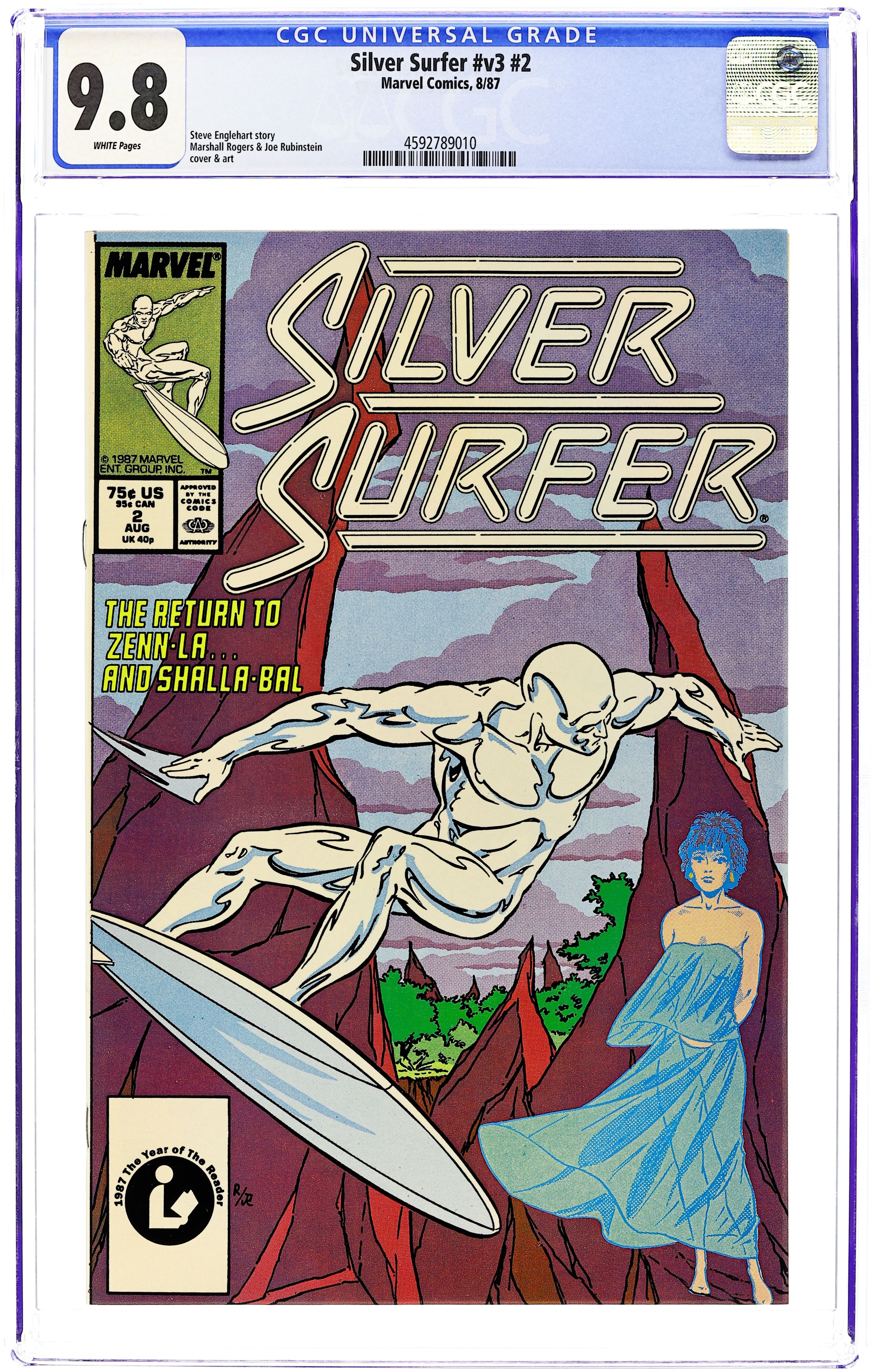 Direct Edition. "Shalla Bal." Story by Steve Englehart. Art by Marshall Rogers and Joe Rubinstein. For years Norrin Radd, the Silver Surfer and former Herald of Galactus, has dreamed of nothing else save returning to his home, the planet Zenn-La, and his beloved Shalla Bal. However, the Surfer will soon learn a hard truth...sometimes you can never return home. 32 pages. Cover price $0.75.