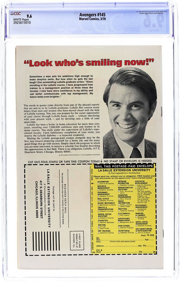 Tags: Marvel Legacy Numbering: Avengers (part 142), AvengersAvengers (1963 1st Series) 142 CGC 8.5