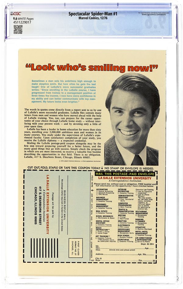 Tags: Marvel Legacy Numbering: Spectacular Spider-Man (part 1), Spider-ManSpectacular Spider-Man (1976 1st Series) 1 CGC 9.6