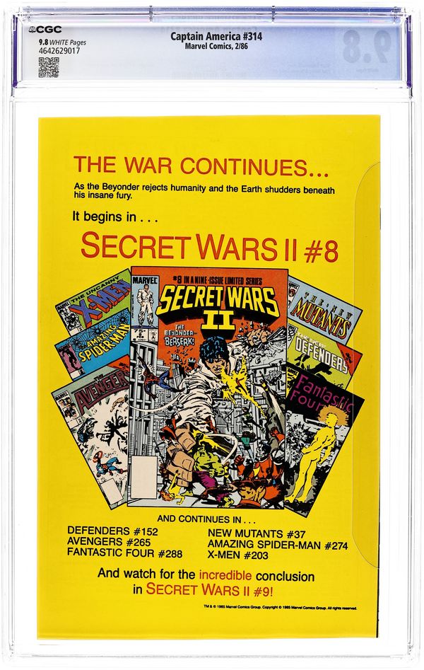 Tags: Marvel Legacy Numbering: Captain America (part 308), Secret Wars II (part 1.1)$125.00- Paper: White