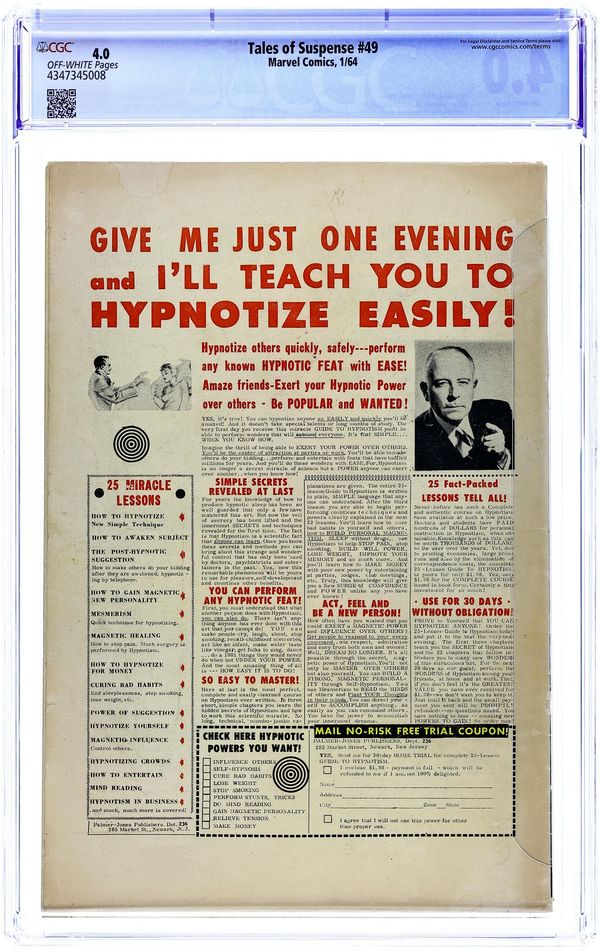 Tags: Marvel Legacy Numbering: Captain America (part 49), Marvel Legacy Numbering: Tales of Suspense (part 49), Iron Man, X-MenTales of Suspense (1959) 49 CGC 4.0