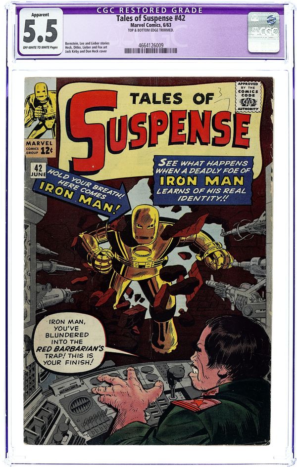 Tags: Marvel Legacy Numbering: Captain America (part 39), Marvel Legacy Numbering: Tales of Suspense (part 39), Iron Man$31,500- Paper: Off white