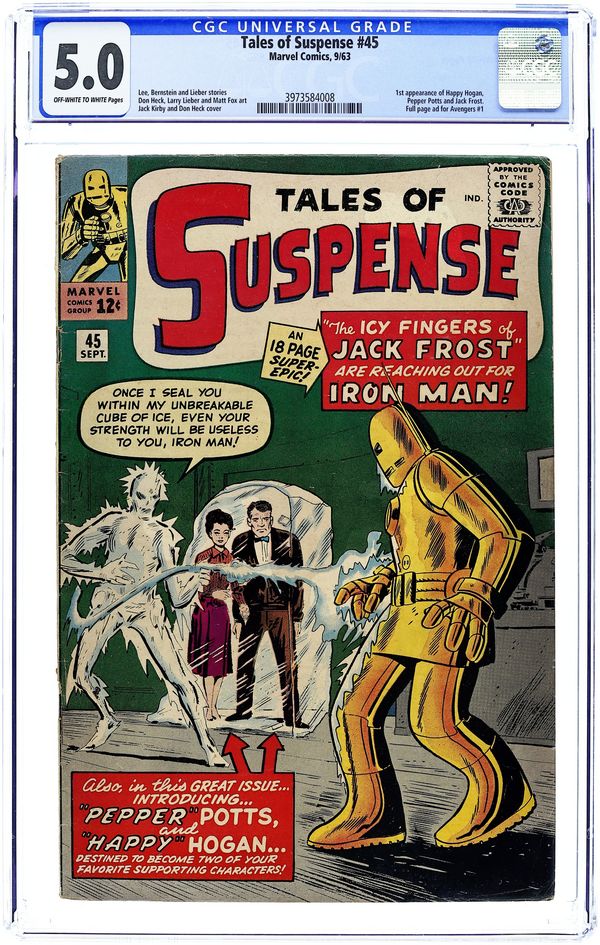 Tags: Marvel Legacy Numbering: Captain America (part 39), Marvel Legacy Numbering: Tales of Suspense (part 39), Iron Man$24,500- Paper: Off white