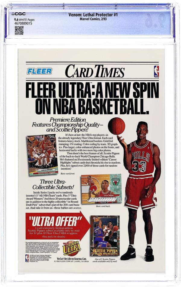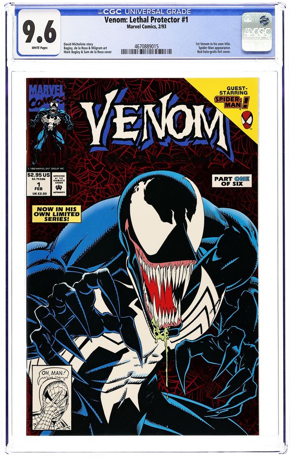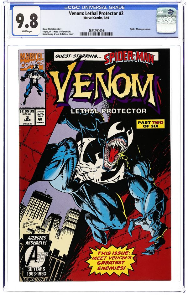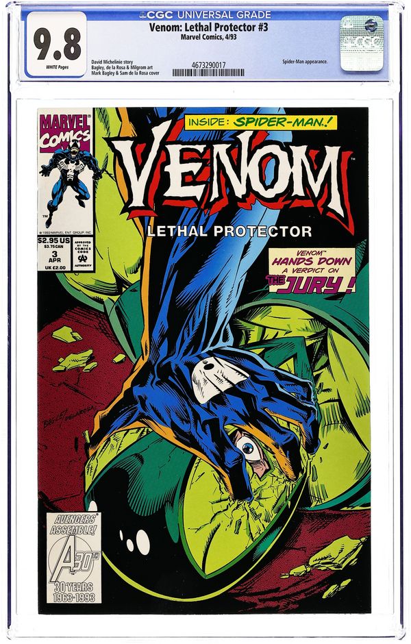 Direct Edition. Cover by Mark Bagley and Sam de la Rosa. Lethal Protector Part 2: War and Pieces, script by David Michelinie, pencils by Mark Bagley, inks by Al Milgrom and Sam de la Rosa; Venom is rejected by the underground dwellers he helped out; Spidey goes to Eddie's father for answers about his son; The Jury comes after Venom for killing its leader's son. 36 pgs., full color. $2.95. Cover price $2.95.