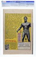 Cover art by Russ Heath. "The Extra Coffin," art by Larry Woromay; The uncle of two sponges has had enough so he orders coffins fitted for them; When the two make a deal with the coffin maker to pad his bill so that they can split the extra cash, the uncle orders an extra coffin and offers the coffin maker a modeling fee if he will lie down in it after the other two are sealed in the air tight coffins placed in the cellar. "Flight to Where" text story. "You Made the Pants Too Long," art by Fred Kida; A tailor's obnoxious customer meets his end when he refuses to heed a warning about staying out of the man's pressing room invention that can press multiple suits of clothes at once. "The Rag Doll," art by Joe Certa; An abusive foster parent is concerned about an agency evaluation so when one of her charges acts up, instead of hitting him like she usually would do, she hands the child a rag doll and tells him to take out his anger on the doll. "The Farmer Takes a Life!", script by Carl Wessler, art by Bob Fujitani; A sadistic farmer who beheads chickens merely to watch their headless bodies run around gets the tables turned on him. "Look Out," art by George Tuska; A man in an auto accident attempts to con the insurance company out of a fat settlement by pretending to be blind, but fate has the last laugh when he is warned about a falling window box and believes it to be a trick. 36 pgs., full color. Cover price $0.10.