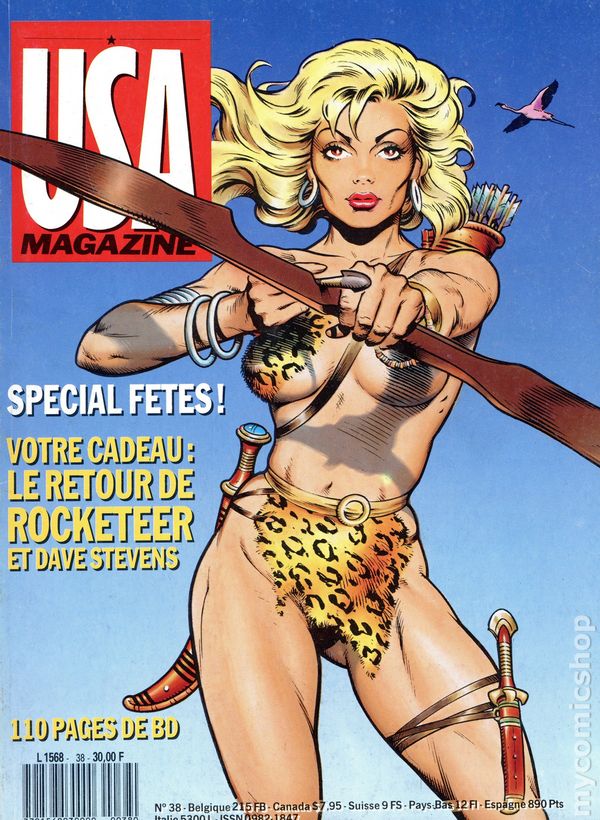 French Series. Cover by Dave Stevens. Cover reprinted from Cheval Noir (1989) #1. Contents include a Rocketeer episode by Stevens, a Den episode by Richard Corben, a Xenozoic Tales episode by Mark Schultz and other American and European comics. 8-1/2" x 11-1/2", 132 pages, full color, French language.