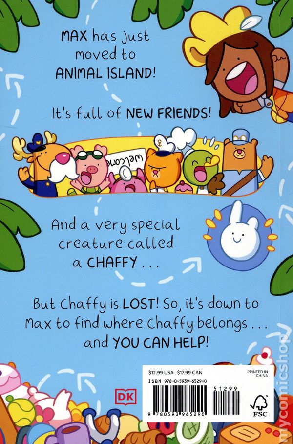 1st printing. Story and art by Jamie Smart. Max and Chaffy are back in another adventure, and this time they're diving below the waves to explore the ocean floor! It's another glorious day on Animal Island, but in the dark depths of the ocean is a map that leads to treasure, just waiting to be found. Who better to find lost things than Max and Chaffy?! Swim through the Coral Reef, traverse the Goldfish Trench, and follow the clues to discover a treasure unlike any other ... From award-winning author Jamie Smart comes another vibrant, highly visual graphic novel about discovering new things, making friends, and returning what's been lost to its rightful owner. The hilarious story is interspersed with engaging search-and-find pages—since Chaffy has a habit of getting lost—as well as items which aren't where they should be! Join Max and Chaffy on their adventure to discover what's been lost, and everything that can be found, on Animal Island. Hardcover, 5 1/2-in. x 8 1/2-in., 128 pages, full color. All Ages Cover price $18.99.