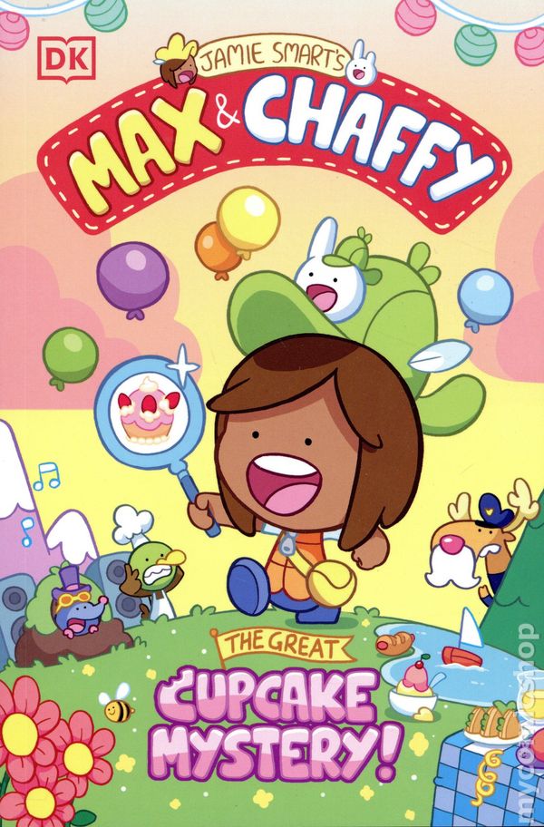 1st printing. Story and art by Jamie Smart. Who better to find what has been lost than Max and Chaffy? Join these hilarious explorers in another search and find mystery on Animal Island, in the hunt for the missing cupcake. Skip through sunny meadows, explore rock pools, and follow the clues to solve the mystery-but hurry! A surprise party isn't the same without cake! From bestselling author Jamie Smart comes another vibrant, highly visual graphic novel about discovering new things, making friends, and returning what's been lost to its rightful owner. The hilarious story is interspersed with engaging search and find pages, since Chaffy has a habit of getting lost, as well as items which aren't where they should be! Softcover, 5 1/2-in. x 8 1/2-in., 128 pages, full color. All Ages Cover price $12.99.