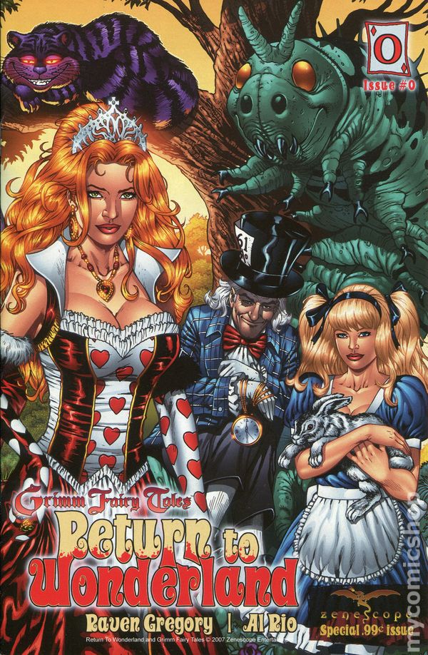 2nd printing. by Gregory, Bonk, & Rio The most epic Wonderland tale begins here! Alice Liddell is no longer the little girl you once knew. Years have passed since she took the trip down the rabbit hole into Wonderland. A grown woman now with a husband and kids of her own, Alice has everything a person could want. But all is not right with Alice. Not right at all Now Alice's daughter Carroll will be forced to take a journey not for the faint of heart. A journey into a realm of malice and madness. A place where the story of Alice was only the beginning. You've never seen Wonderland quite like this. Don't miss this new Grimm Fairy Tale series from Zenescope Entertainment. Cover price $0.99.