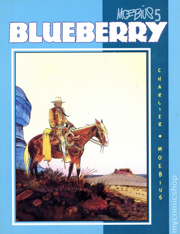 Volume 5 - 1st printing. "Blueberry Part 2!" Written by Jean-Michel Charlier. Art and Cover by Jean "Moebius" Giraud. Continuing the groundbreaking adventures of Lieutenant Blueberry including Angel Face, Broken Nose, The Long March, The Ghost Tribe, The Last Cad, and The End of the Trail!! Hardcover, 8 1/2-in. x 11-in., 302 pages, full color. Cover price $45.95.