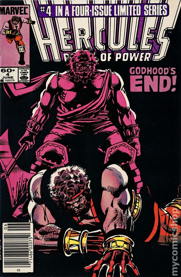 Newsstand Edition. "A Pearl of Great Price!" Story and art by Bob Layton. The Lion of Olympus' journey comes full circle. Hercules and his companions arrive on Mount Olympus and to their horror they find the inhabitants all slain. The immortal Olympians have been murdered by their monarch Zeus. Inflicted with an unknown insanity the Thunderer has one last Olympian to slay, his own son Hercules. It's Hercules vs. Zeus...to the death. 32 pages. Cover price $0.60.