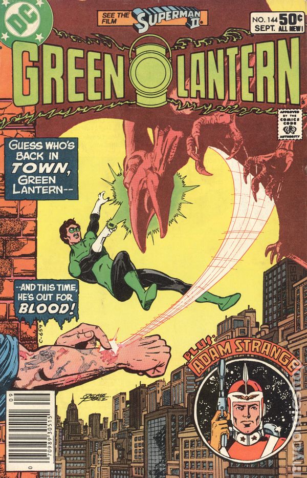 Direct Edition. "The Space Ranger Strikes Back." Part 1 of 4. Eclipso attacks Green Lantern and Thomas Kalmaku, but GL gets transported to the time of the Space Ranger. 1st app. Citadel. Script by Marv Wolfman, art by Joe Staton. Includes Adam Strange back-up story. Cover by Rich Buckler, Frank McLaughlin, Joe Staton, Dave Cockrum, and Dick Giordano. Cover price $0.50.