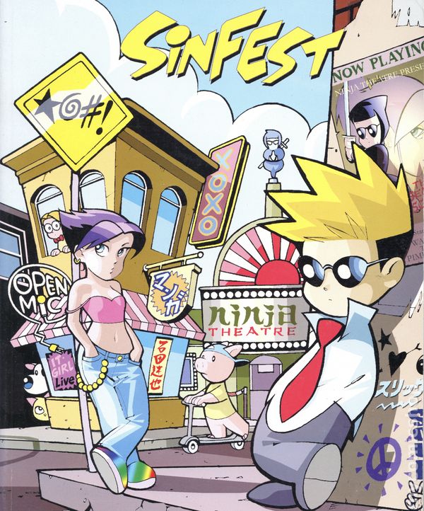 Volume 1 - 1st printnig. By Tatuya Ishida. First compilation of the online comic Sinfest, featuring Slick, Monique, God, the Devil. Pooch, and Percival, and others. Here the Sinfest universe is introduced, a place where God speaks through handpuppets, the Devil goes hunting, the Eastern Dragon floats around, and mortals kick back and watch the whole cosmic play. Softcover, 8-in. x 10-in., B&W. Mature Readers Cover price $17.95.