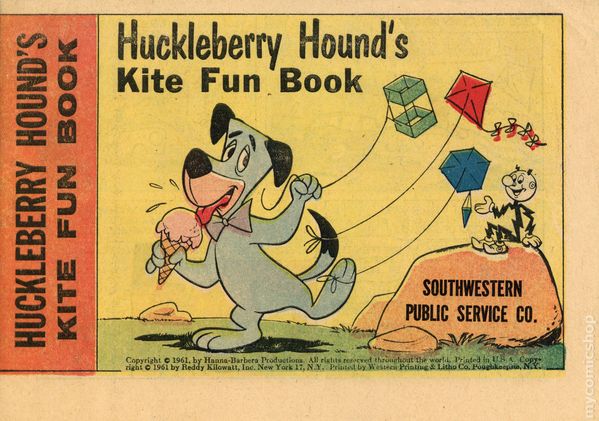 Huckleberry Hound Kite Fun Book (1971) is a promotional comic distributed by Reddy Kilowatt, Inc. via investory-owned utility companies. Huckleberry Hound joins Reddy Kilowatt in a story about kite safety and fun. The back cover features Reddy's Kite Safety Rules. 16 pages, full color, newsprint, 7-in. x 5-in., no cover price.