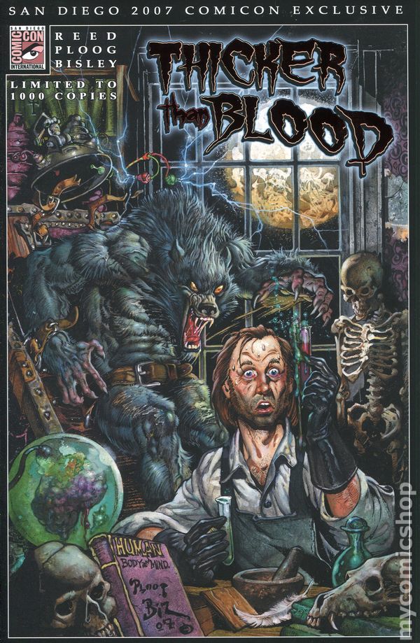 San Diego Comic Con Red Foil Variant. Limited to 1000 copies. Written by Simon Reed. Art by Mike Ploog. Painted by Simon Bisley. Two brothers on a trek across Scotland find themselves faced with more than just a stroll across the Highlands. After travelling for miles, lost in the mist, they chance upon shelter not knowing what lay before them. The darkness descends and the moon rises, an invitation for all manner of creatures! This is a tragic tale of two brothers being in the wrong place at the wrong time, and how their lives were changed forever. The human spirit is thicker than blood, and this is their tale! 24 pages, full color. Mature Readers.