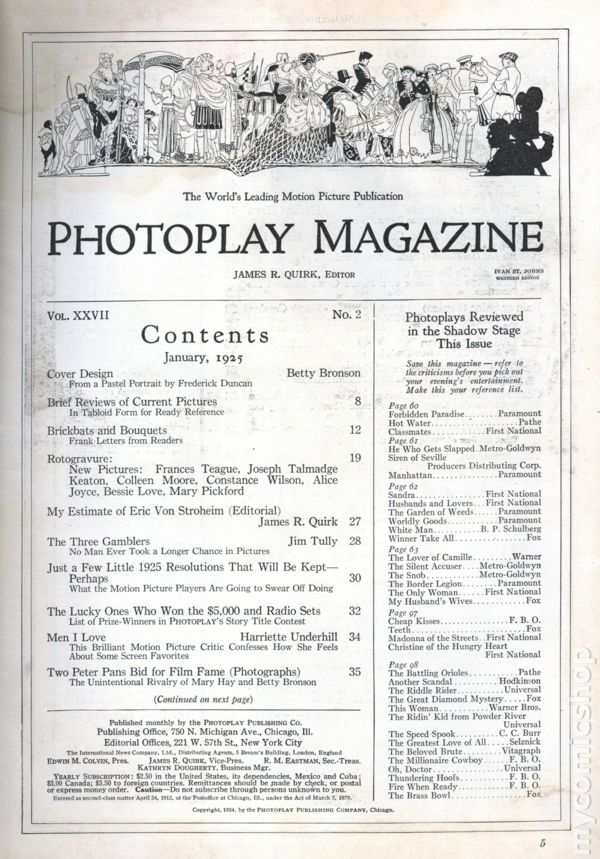 Published Jan 1915 by Photoplay Publishing.This item is not in stock at MyComicShop. If you use the "Add to want list" tab to add this issue to your want list, we will email you when it becomes available.