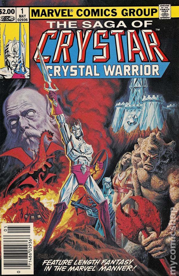 Newsstand Edition. "The Sundered Throne." This giant-sized first issue sets up the premise for the series, which evokes the fantasy and sword-and-sorcery of Conan the Barbarian. Crystar transforms to crystal while Moltar becomes magma, giving both princes special powers. Script by Mary Jo Duffy, pencils by Bret Blevins, inks by Andy Yanchus. Cover by Bob Larkin. Cover price $2.00.