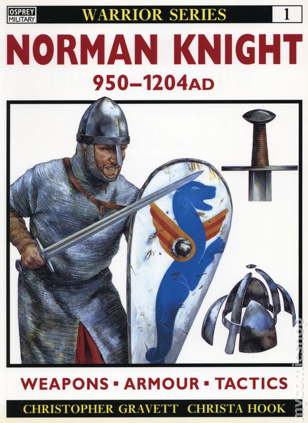 Volume 1 - 1st printing. "Norman Knight AD 950-1204!" Written by Christopher Gravett. Art by Christa Hook. Throughout the 11th and 12th centuries the Norman knight was possibly the most feared warrior in Western Europe. He was descended originally from the Vikings who had settled in Northern France under their leader Rollo in or around 911 at the behest of Charles the Simple and throughout the following centuries they remembered and built on their warlike reputation. This book shows how their military prowess was renowned throughout the known world and resulted in Normans conquering Sicily in 1060 and England in 1066, as well as participating in many important battles in Italy and playing a major part in the First Crusade. Softcover, 64 pages, PC/PB&W. Cover price $18.95.
