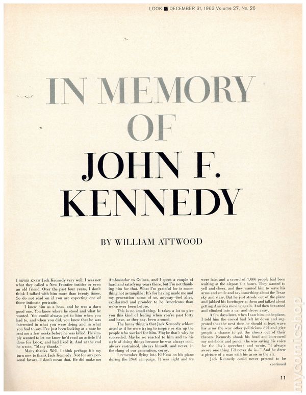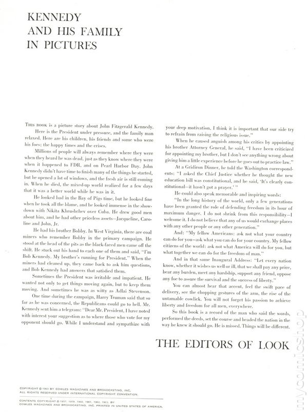 1963 John F. Kennedy Edition. This issue covers the life of Kennedy and his family. 10.5" x 13", 68 pages, PC/PB&W. Cover price $1.00.
