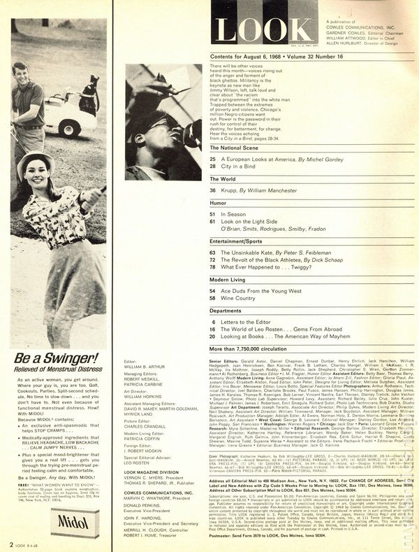 Look (1937-1971 Cowles Media) Magazine Vol. 32 #16Published Aug 1968 by Look, Inc./Cowles Magazines.