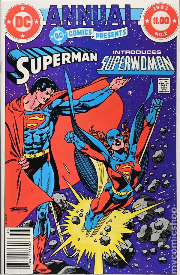 DC Comics Presents: Superman and Superwoman! - "Welcome to Luthorcon III!" Written by Elliot S! Maggin. Art by Eduardo Barreto and Jerry Ordway. As Superman fills in at the Luthorcon III convention for an actor famous for playing the Man of Steel, Superwoman of 29th century Metropolis decides to pay 20th century Metropolis a visit 48 pages, FC. Cover price $1.25.