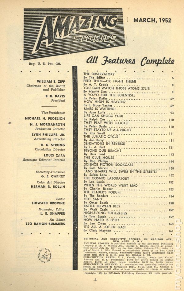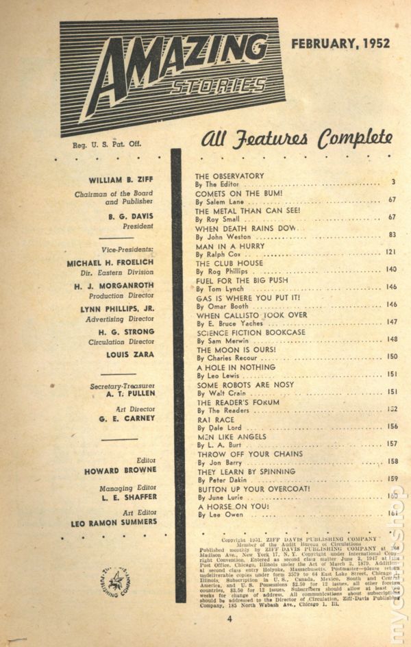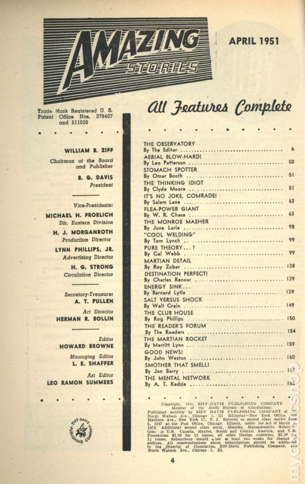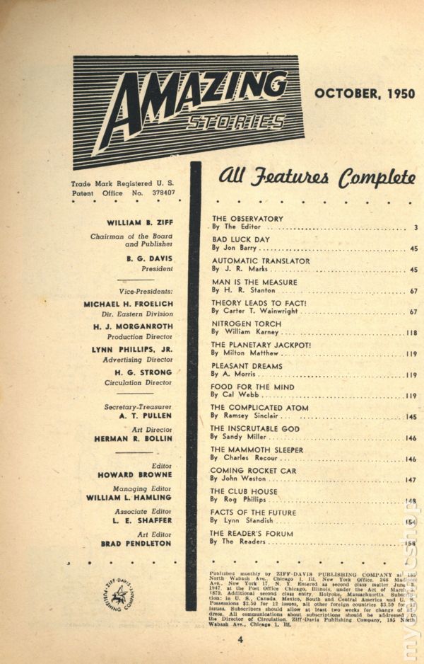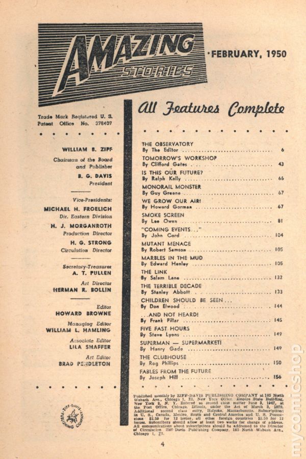 February 1927. "Land that Time Forgot" cover by Frank R. Paul. Stories by Edgar Rice Burroughs ("The Land That Time Forgot" part 1), H.G. Wells ("The First Men in the Moon" part 3, conclusion), Capt. H.G. Bishop, W. Alexander, Edwin Balmer and William B. MacHarg, Ammianus Marcellinus, and Garrett P. Serviss. Edited by Hugo Gernsback. 8-in. x 11-in., black and white with color cover; 96 newsprint pages. Cover price $0.25.