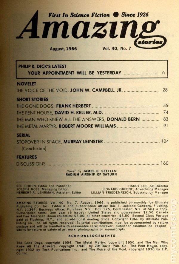 Amazing Stories (1926-Present Experimenter) Pulp Vol. 44 #11Published 1970 (est.) by Experimenter Publications.This item is not in stock at MyComicShop. If you use the "Add to want list" tab to add this issue to your want list, we will email you when it becomes available.