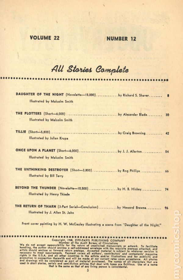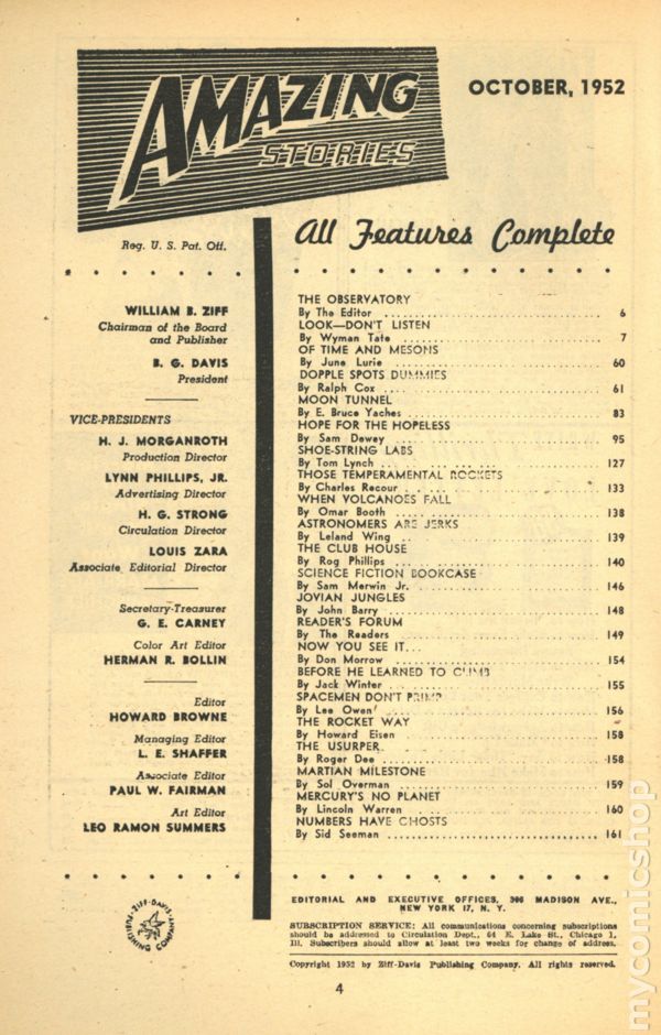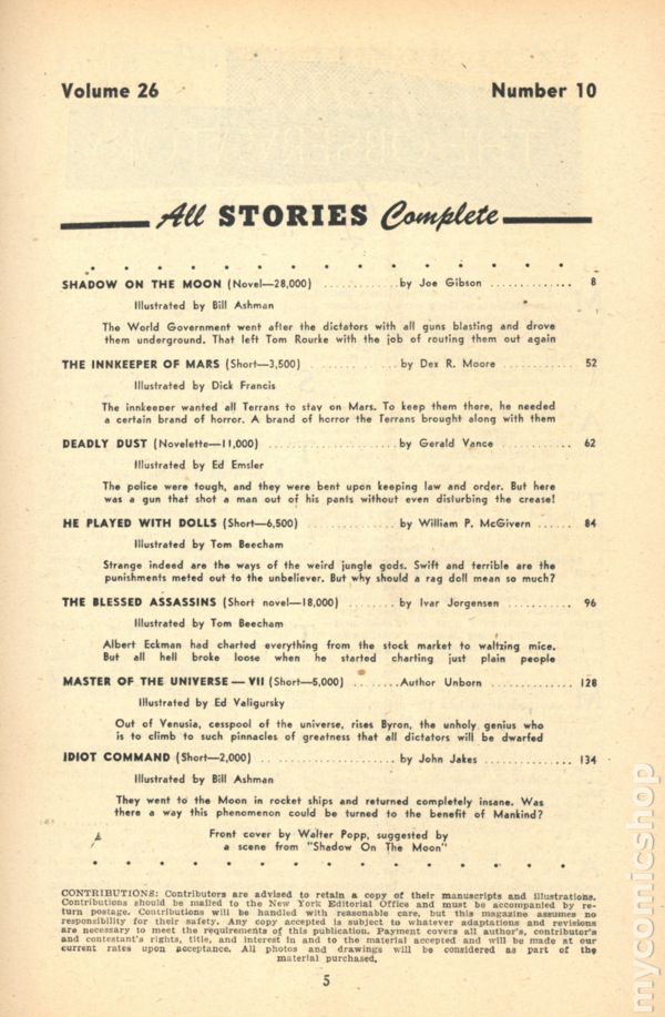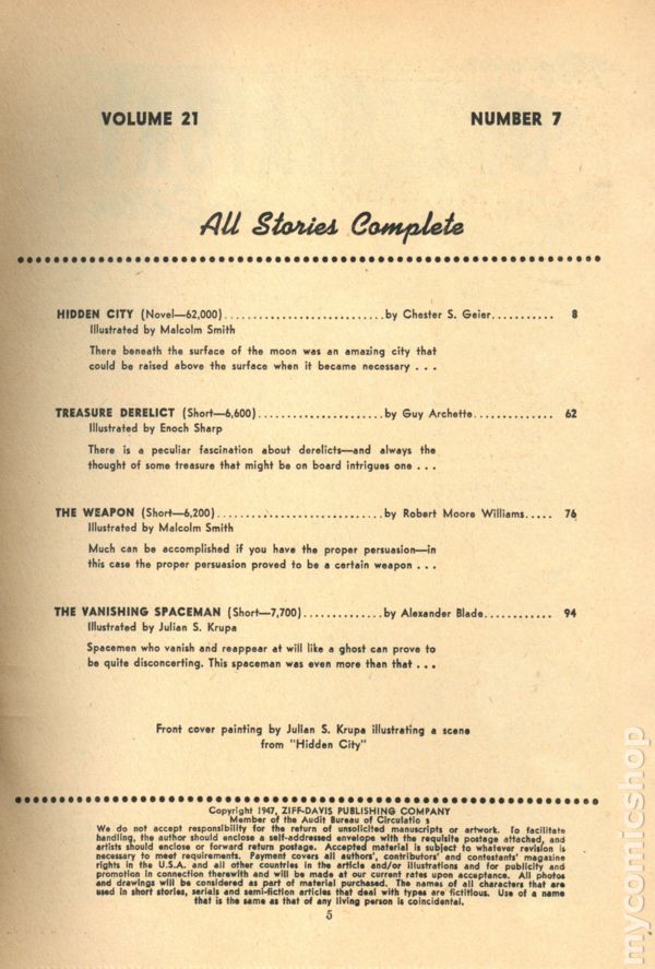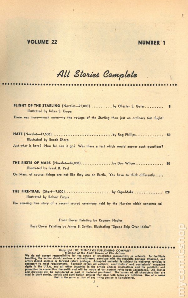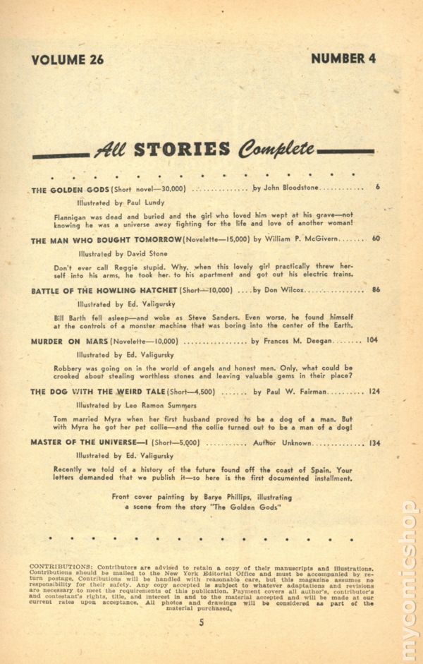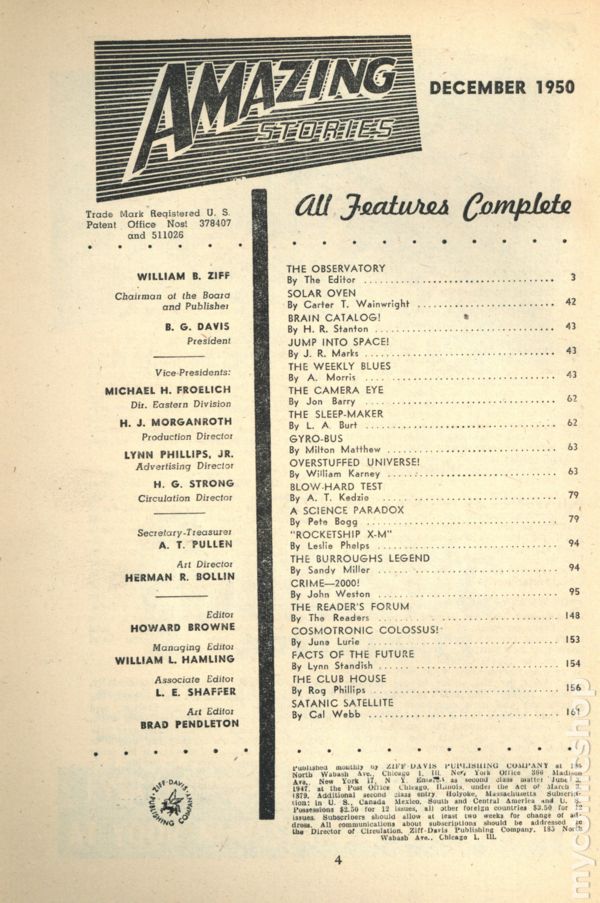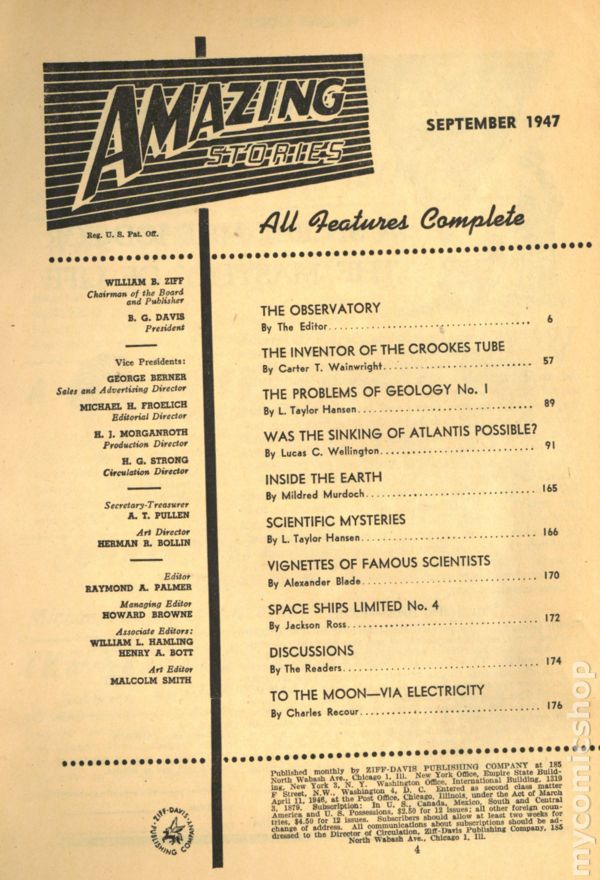 December 1926. Cover art by Frank R. Paul. Stories by H. G. Wells ("The First Men on the Moon"), Garrett P. Serviss ("The Second Deluge"), A. Hyatt Verrill "Through the Crater's Rim", and many more. Edited by Hugo Gernsback. 8-in. x 11-in.; black and white with color cover; 96 newsprint pages. Cover price $0.25.