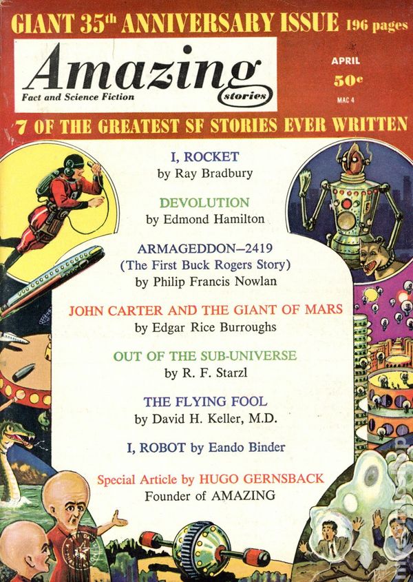 March 1929. First Buck Rogers cover by Frank R. Paul. Story by Philip Francis Nowlan, "The Airlords of Han" (2nd and final pulp Buck Rogers story), and more. Edited by Hugo Gernsback. 8" x 11"; black and white with color cover. Cover price $0.25.