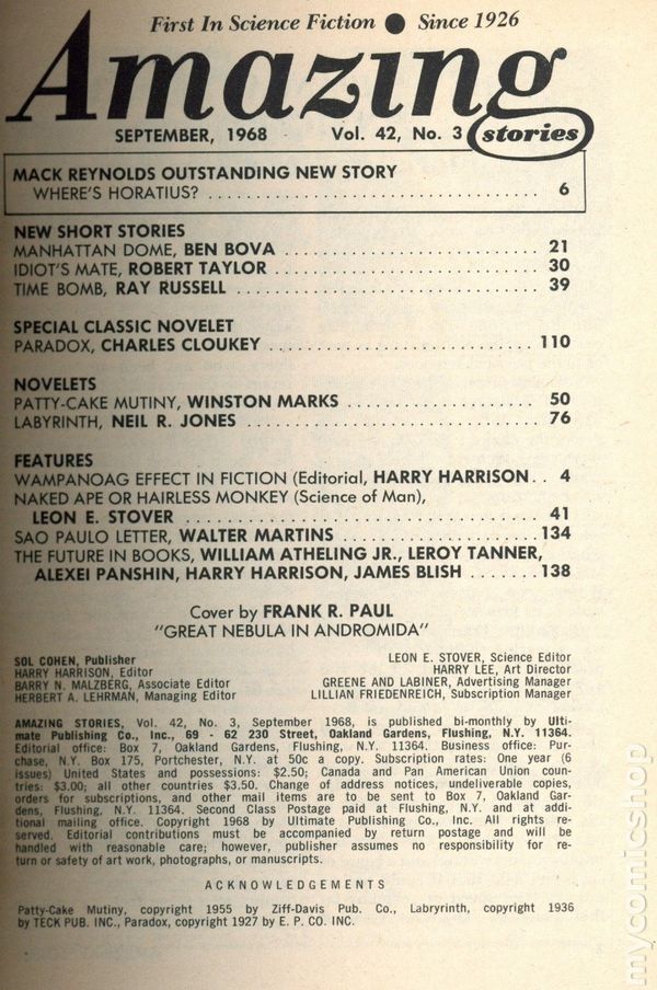 Amazing Stories (1926-Present Experimenter) Pulp Vol. 44 #12Published 1970 (est.) by Experimenter Publications.This item is not in stock at MyComicShop. If you use the "Add to want list" tab to add this issue to your want list, we will email you when it becomes available.