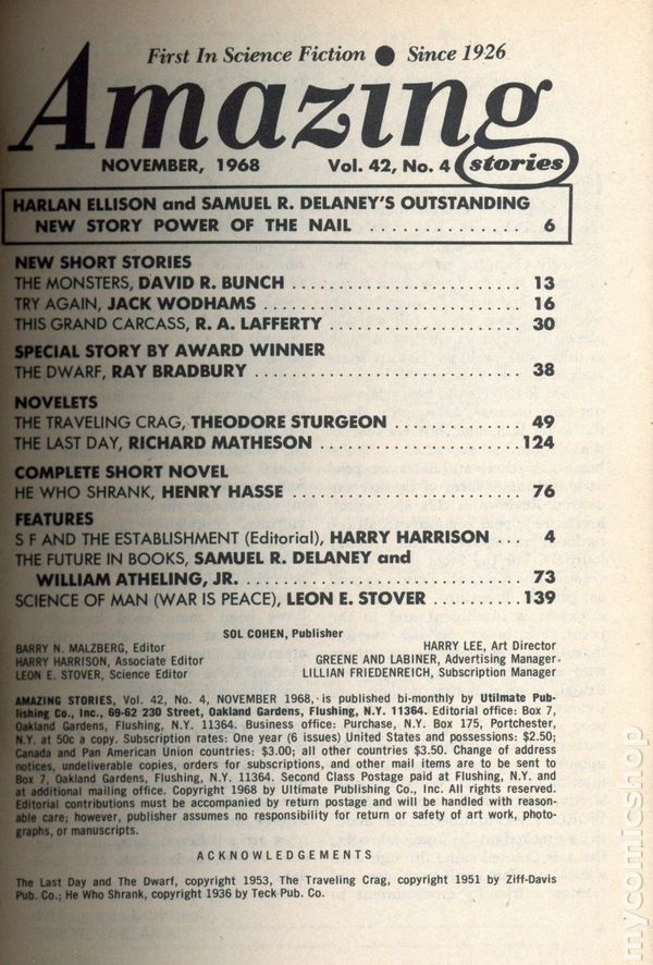 Amazing Stories (1926-Present Experimenter) Pulp Vol. 43 #11Published 1969 (est.) by Experimenter Publications.This item is not in stock at MyComicShop. If you use the "Add to want list" tab to add this issue to your want list, we will email you when it becomes available.