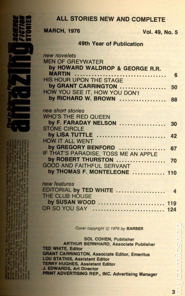 $13 Amazing Science Fiction v49 #5 (Mar '76) VF+ George R R Martin5 books Clicking on the links to the eBay listings shown above and then making a purchase may result in MyComicShop earning a commission from the eBay Partner Network.