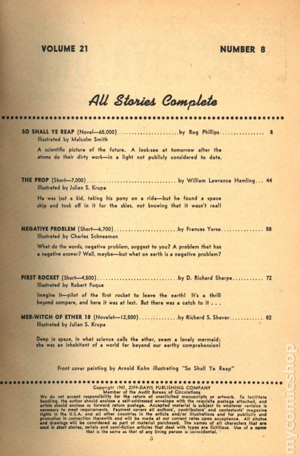 April 1928. Stories by H. G. Wells ("A Story of the Days to Come" part 1), Hugo Gernsback ("Baron Munchhausen's Scientific Adventures"), Cecil B. White ("The Return of the Martians"), David H. Keller M.D. ("The Yeast Men"), and many more. Edited by Hugo Gernsback. 8" x 11"; black and white with color cover. Cover price $0.25.