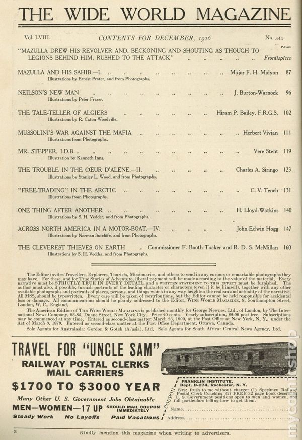 No. 344 - December 1926. A collection of true stories from all over the world. "The Tale-Teller of Algiers". 190 Pages, B&W. Cover price $0.20.