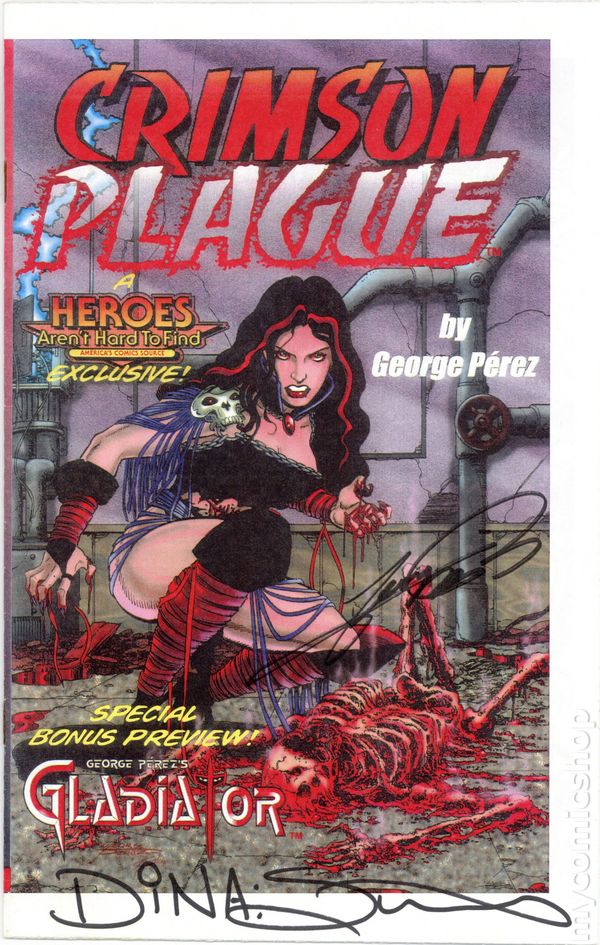 Heroes Aren't Hard to Find Exclusive Preview Edition - Limited to 100 copies. Story and art by George Perez. Preview of Crimson Plague and Gladiator. NOTE: Generic image is of a signed copy, this does not necessarily reflect all copies.