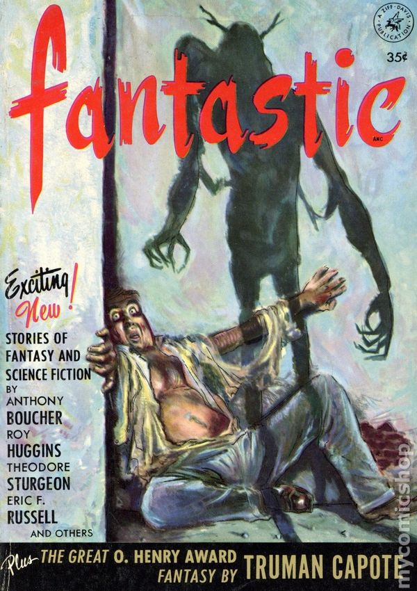 Fall 1952. Science fiction and fantasy stories by Anthony Boucher, Roy Huggins, Theodore Sturgeon, Truman Capote (reprinting his classic "Miriam" story, winner of the O. Henry Award), Jerome Bixby, Fritz Leiber, Eric Frank Russell, Dean Evans, and Edgar Allan Poe. Heinrich Kley portfolio. Front cover by Leo R. Summers. Back cover by George Tooker. 5.5-in. x 7.75-in.; black and white with some spot color; 160 newsprint pages. Cover price $0.35.