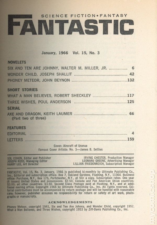 Fantastic (1952-1980 Ziff-Davis/Ultimate) Vol. 15 #3Published Jan 1966 by Ziff Davis.