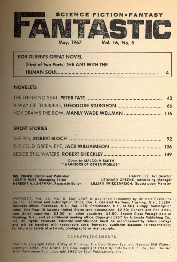 Fantastic (1952-1980 Ziff-Davis/Ultimate) Vol. 16 #3Published Jan 1967 by Ziff Davis.