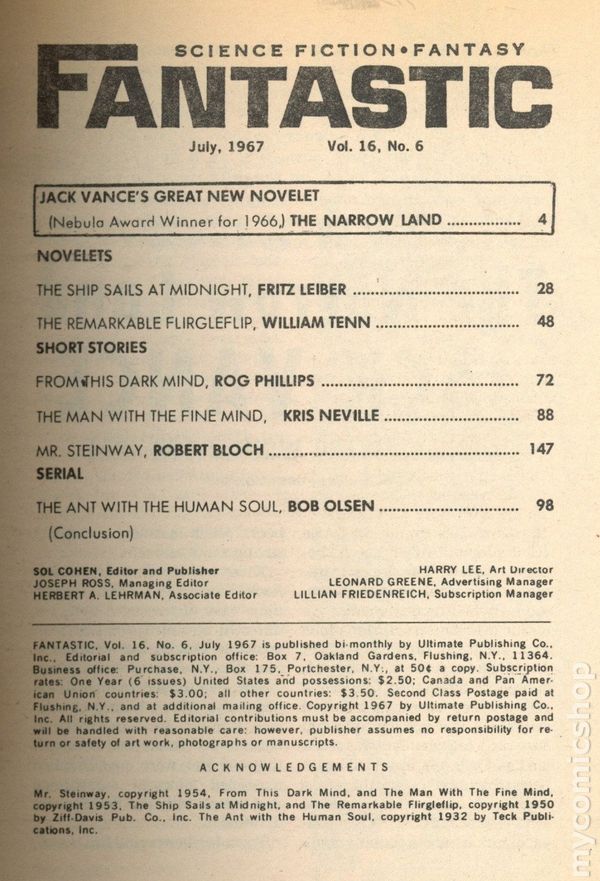 Fantastic (1952-1980 Ziff-Davis/Ultimate) Vol. 16 #4Published Mar 1967 by Ziff Davis.$2.50